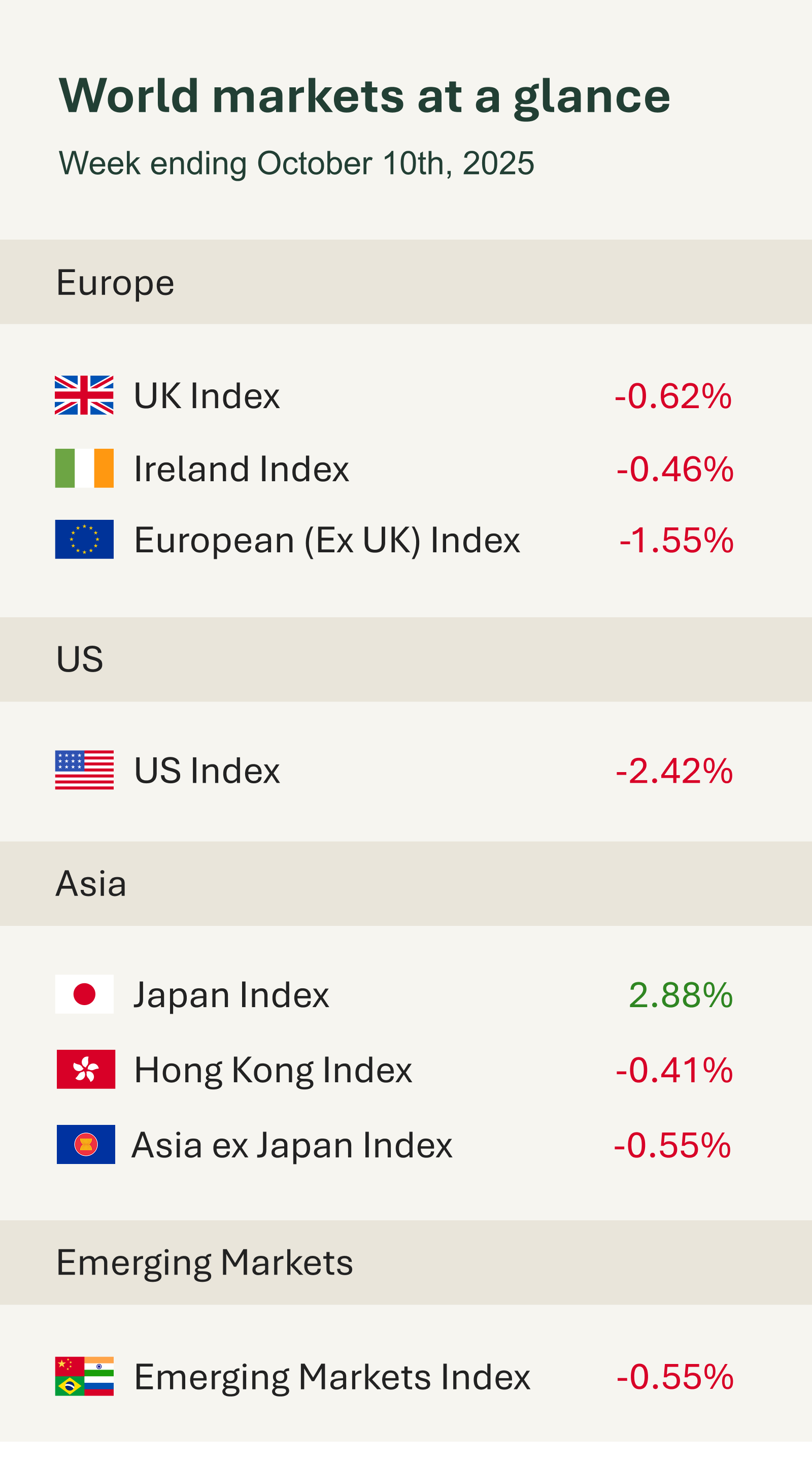 However, gains were swiftly erased late Friday, after President Donald Trump announced a sweeping escalation in trade tensions with China. The U.S. will impose an additional 100% tariff on Chinese imports beginning 1 November, citing what Trump described as an “extraordinarily aggressive position” by Beijing. He also unveiled plans to restrict exports of all critical software to China, in response to Chinese controls on rare earth materials. U.S. markets closed sharply lower, though the announcement came late in the session for UK and European markets, limiting its immediate impact abroad. In an apparent attempt to cool tensions over the weekend, President Donald Trump said Xi Jinping “had a bad moment” when announcing new export controls on rare earths and critical minerals.